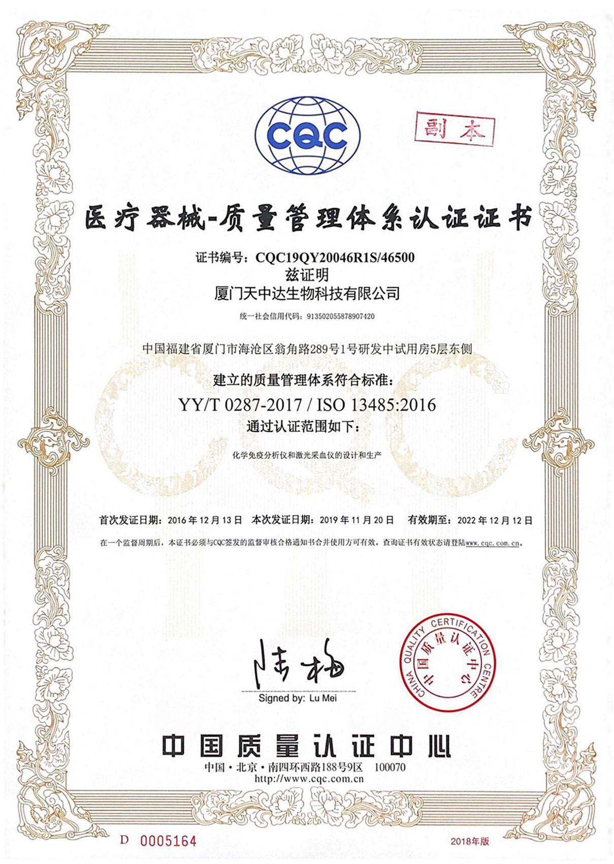 厦门天中达生物科技有限公司坐落于风景秀丽的厦门海沧生物医药产业园区,是一家以研发、制造及销售生命科学设备为主的高新技术企业。先后获得厦门市高新技术、“专精特新”小微企业认定,通过ISO13485医疗器械质量管理体系认证、医疗器械生产许可证,并取得多个医疗器械产品注册证。